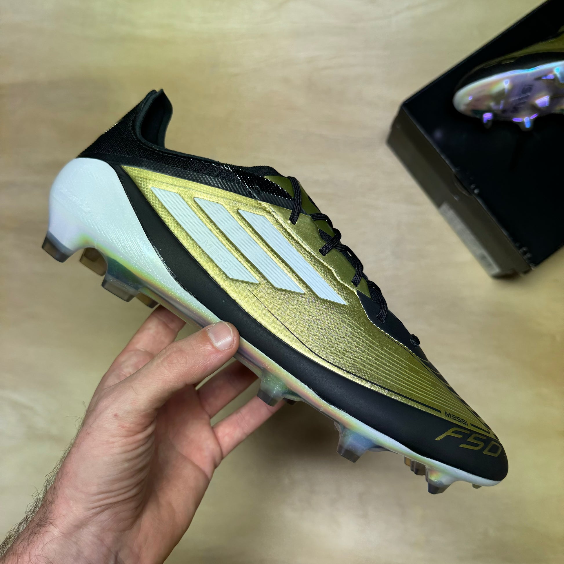 Adidas F50 Elite FG in the signature Messi gold colorway.
