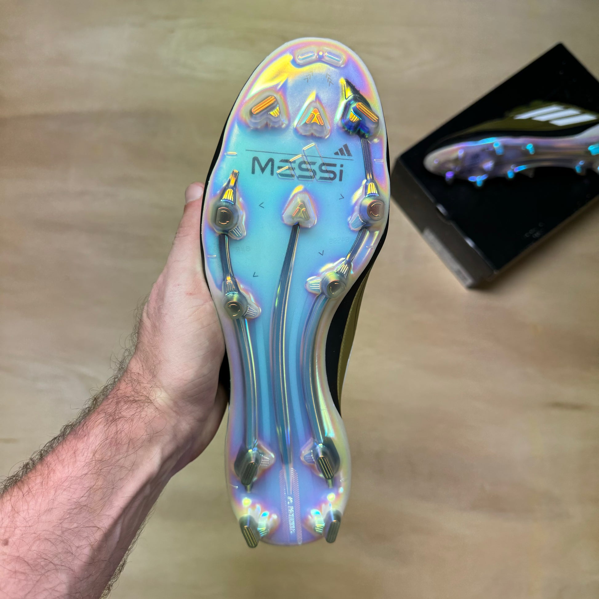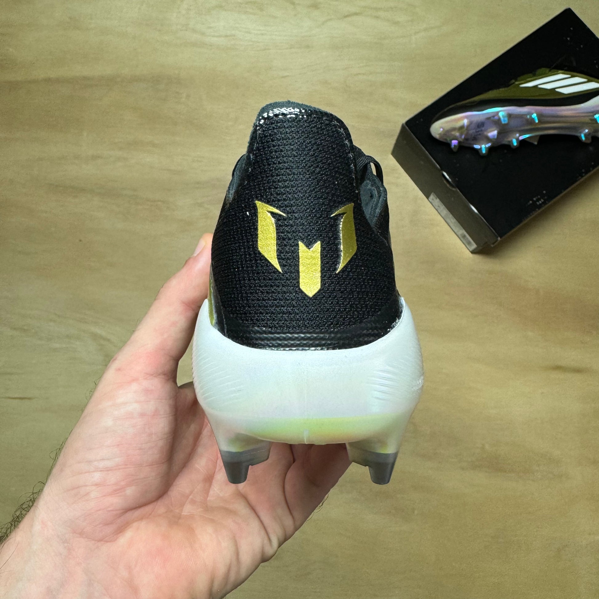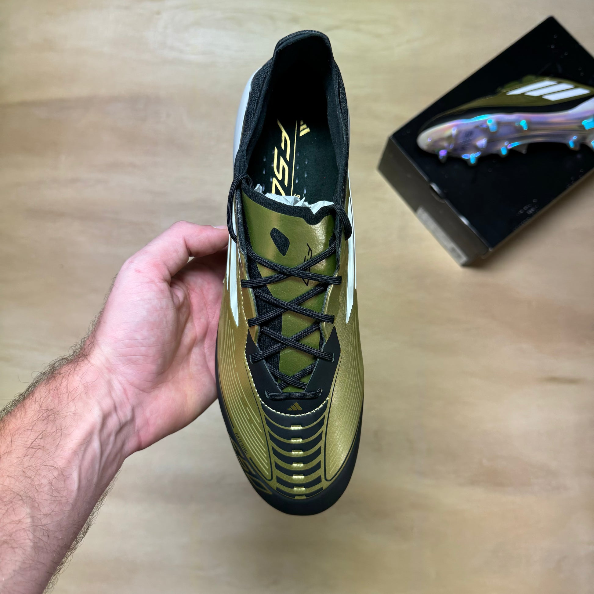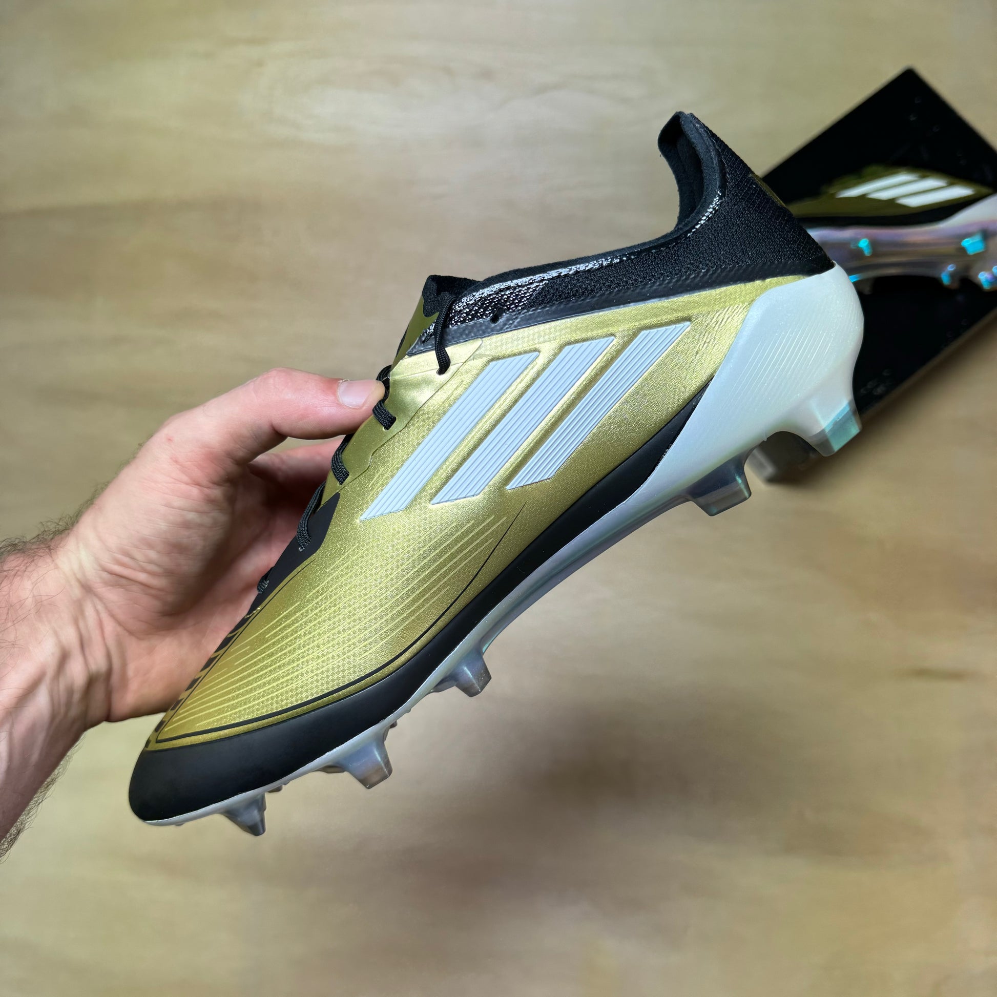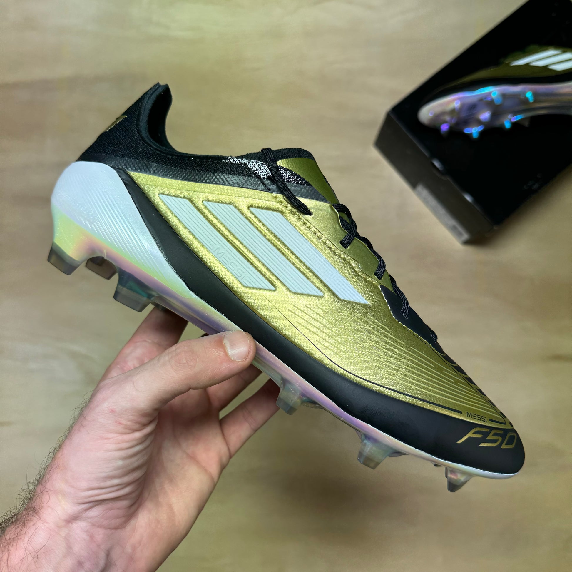 Adidas F50 Elite FG in the signature Messi gold colorway.