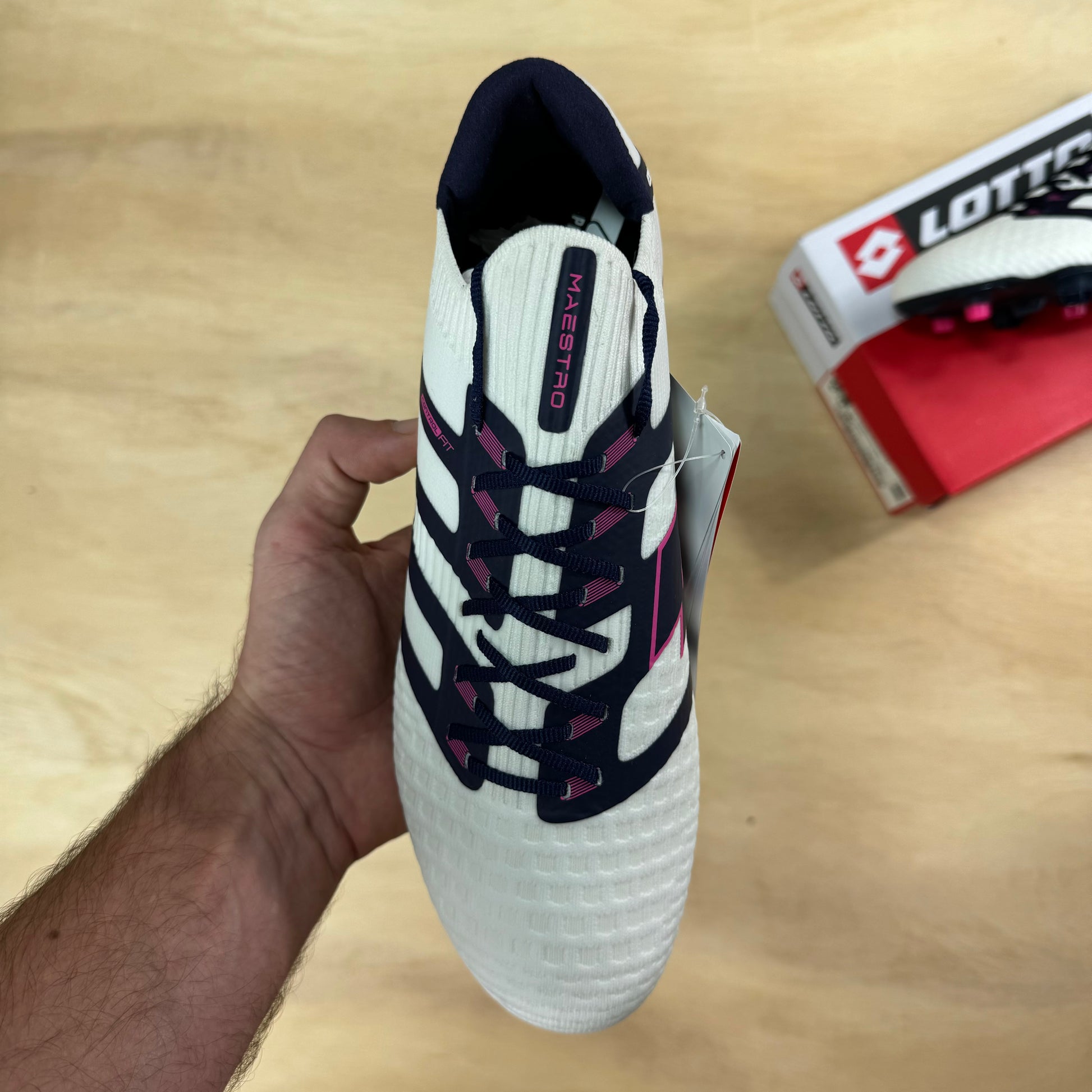 Lotto Maestro 100 IV FG in the white/navy colorway