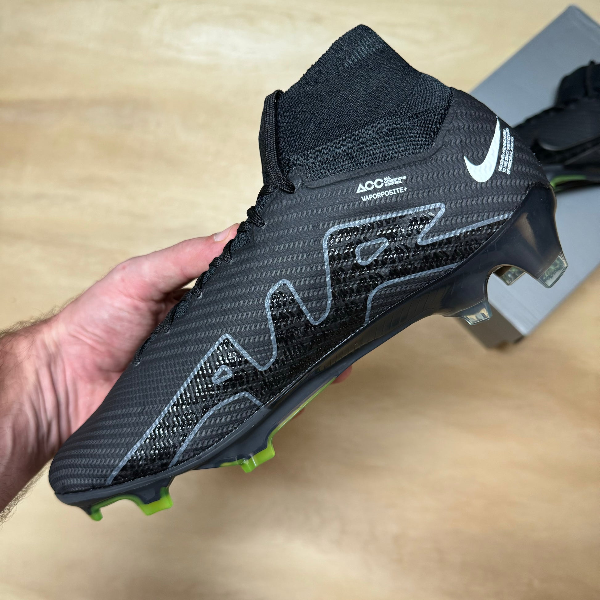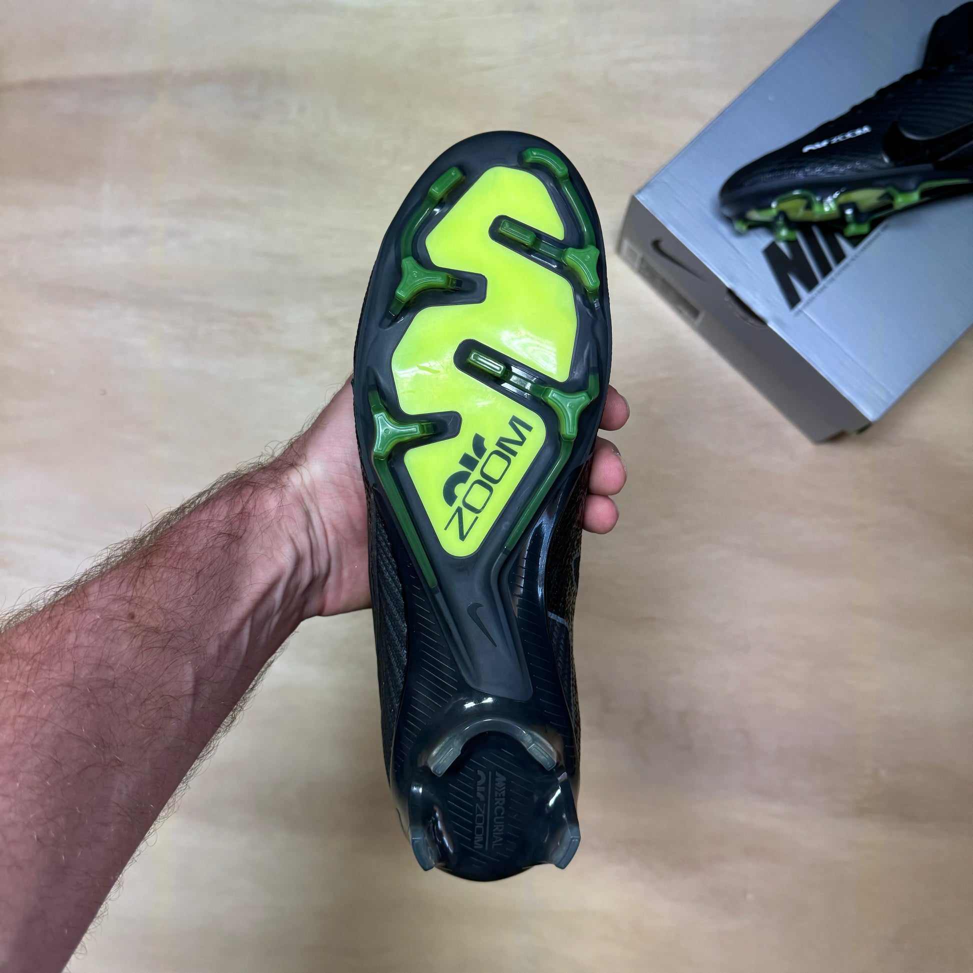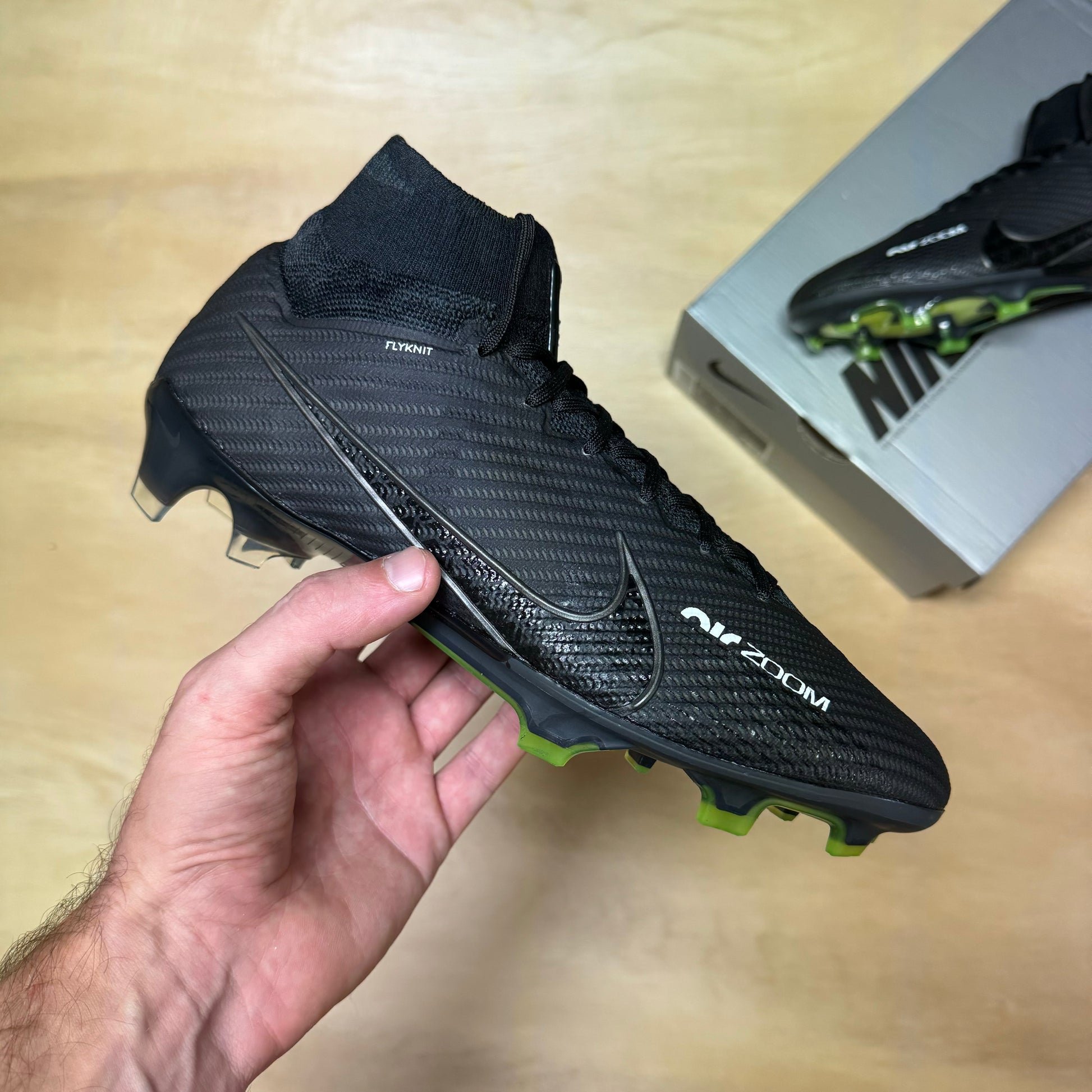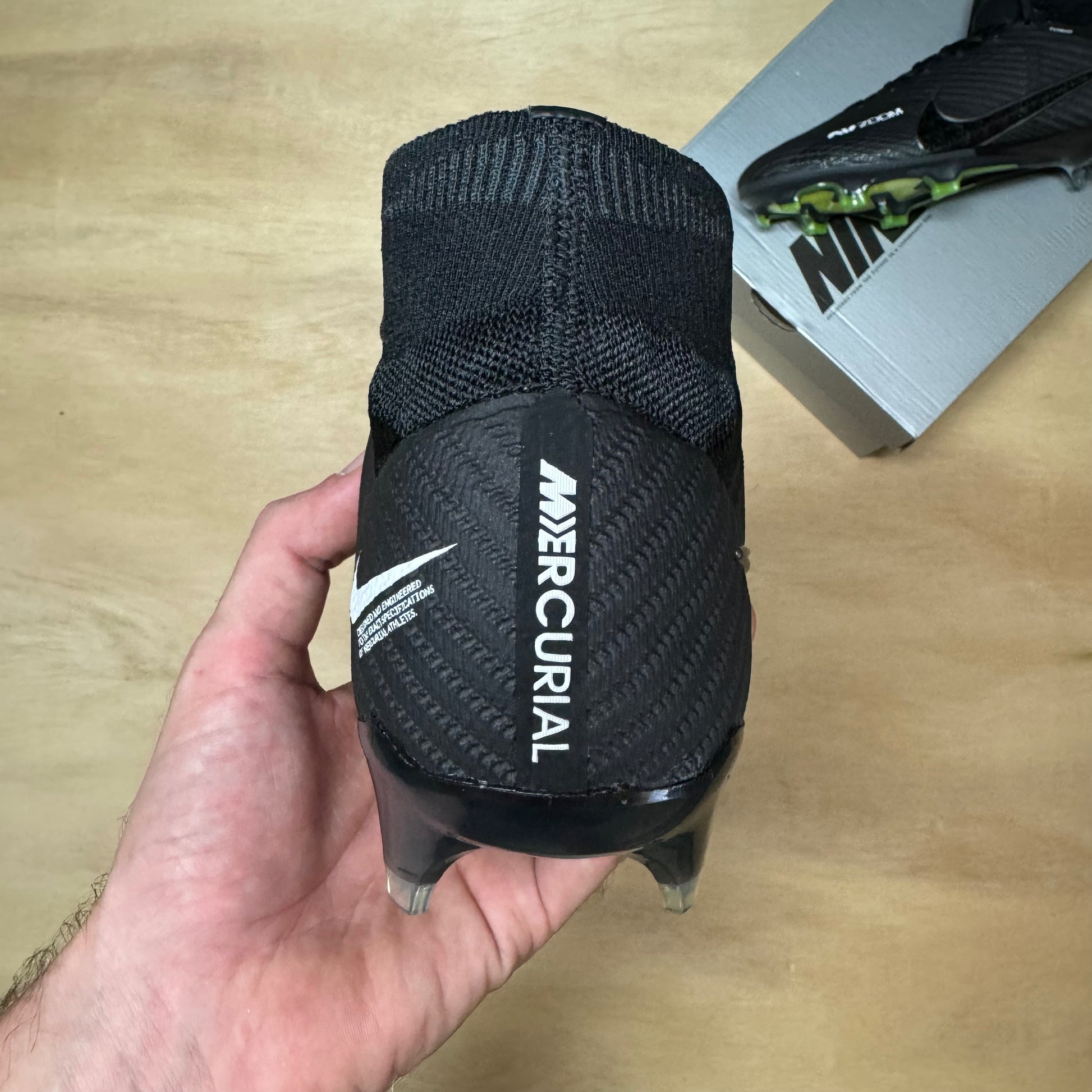 Nike Mercurial Zoom Superfly 9 Elite FG in the black/neon colorway.