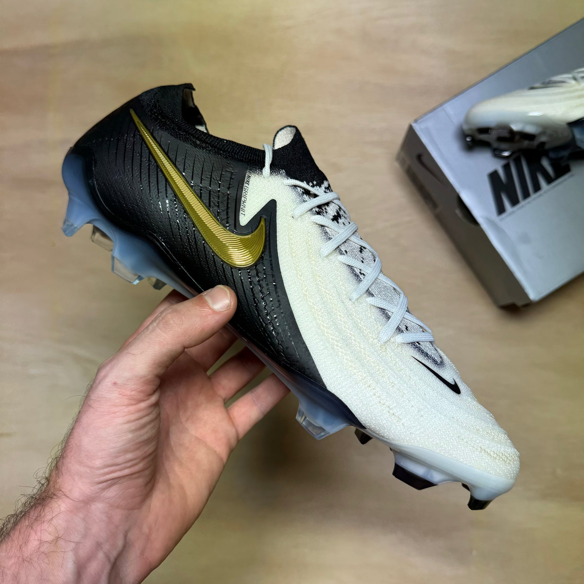 Nike Phantom GX II Elite FG in the white/black/gold colorway.