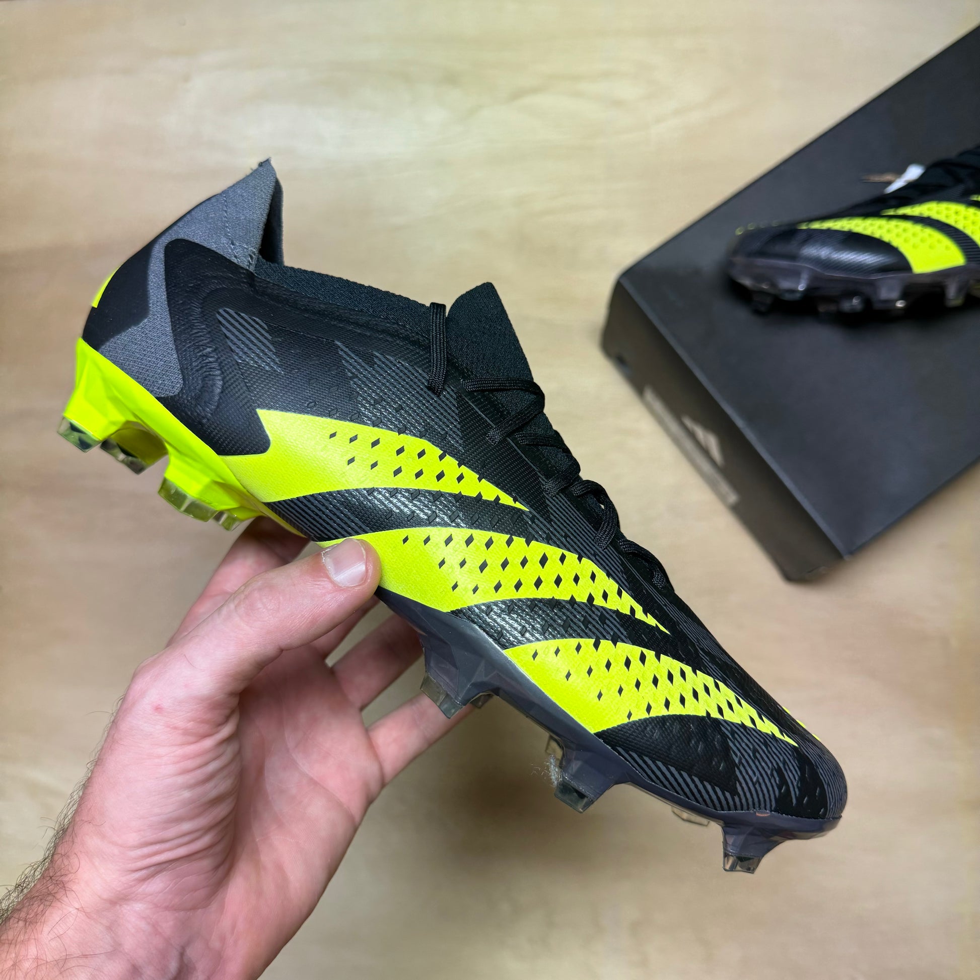 Adidas Predator Accuracy INJ .1 L FG in the black/yellow colorway.