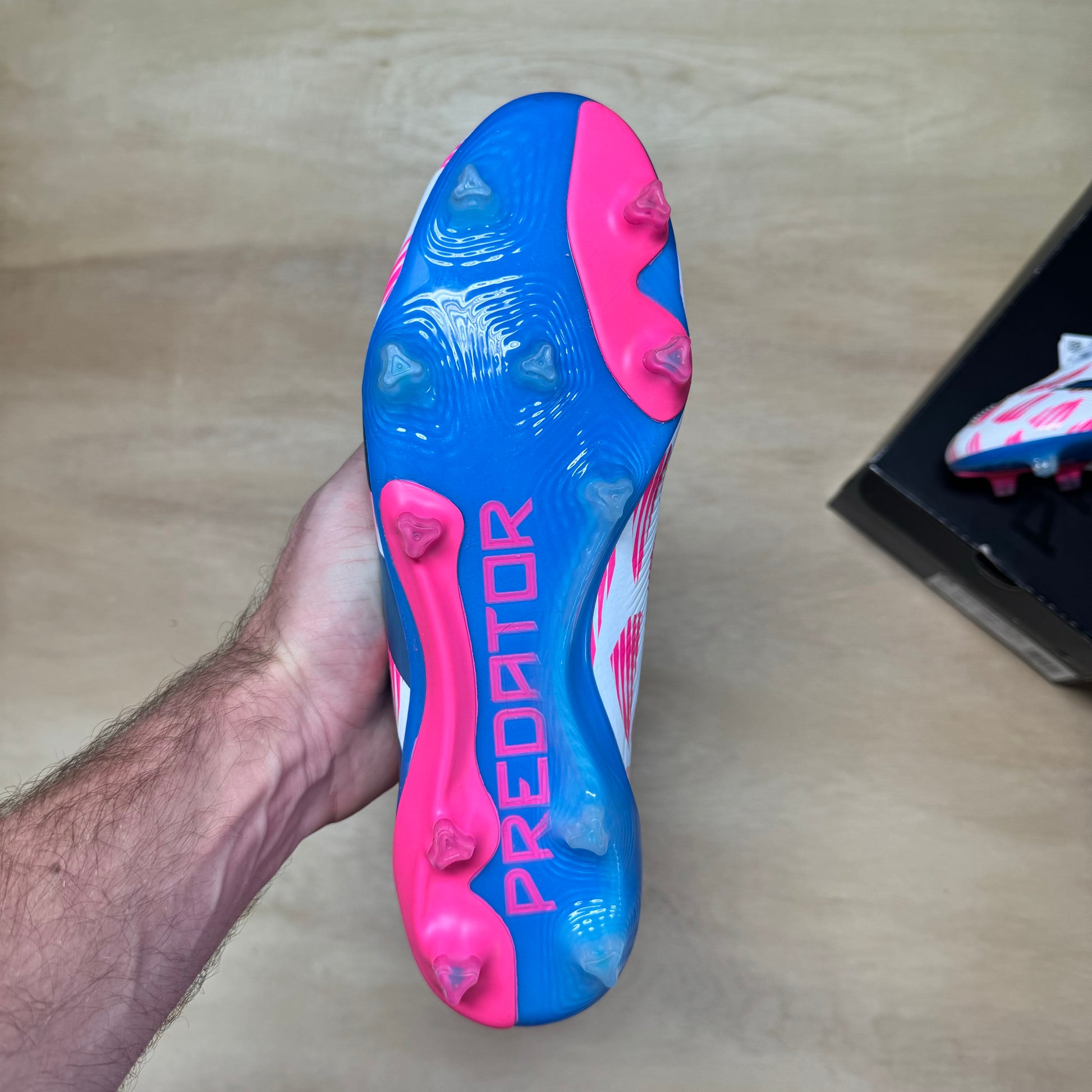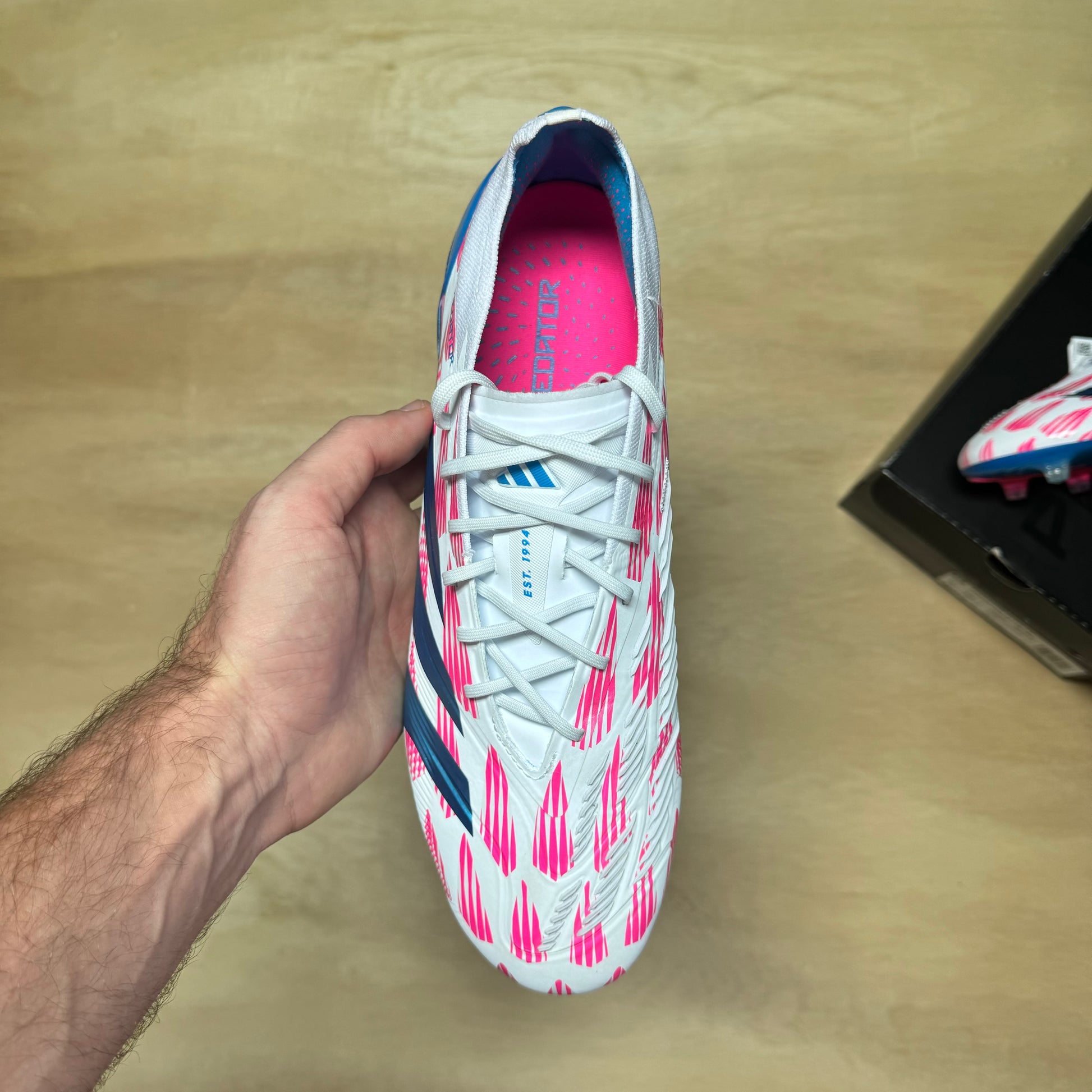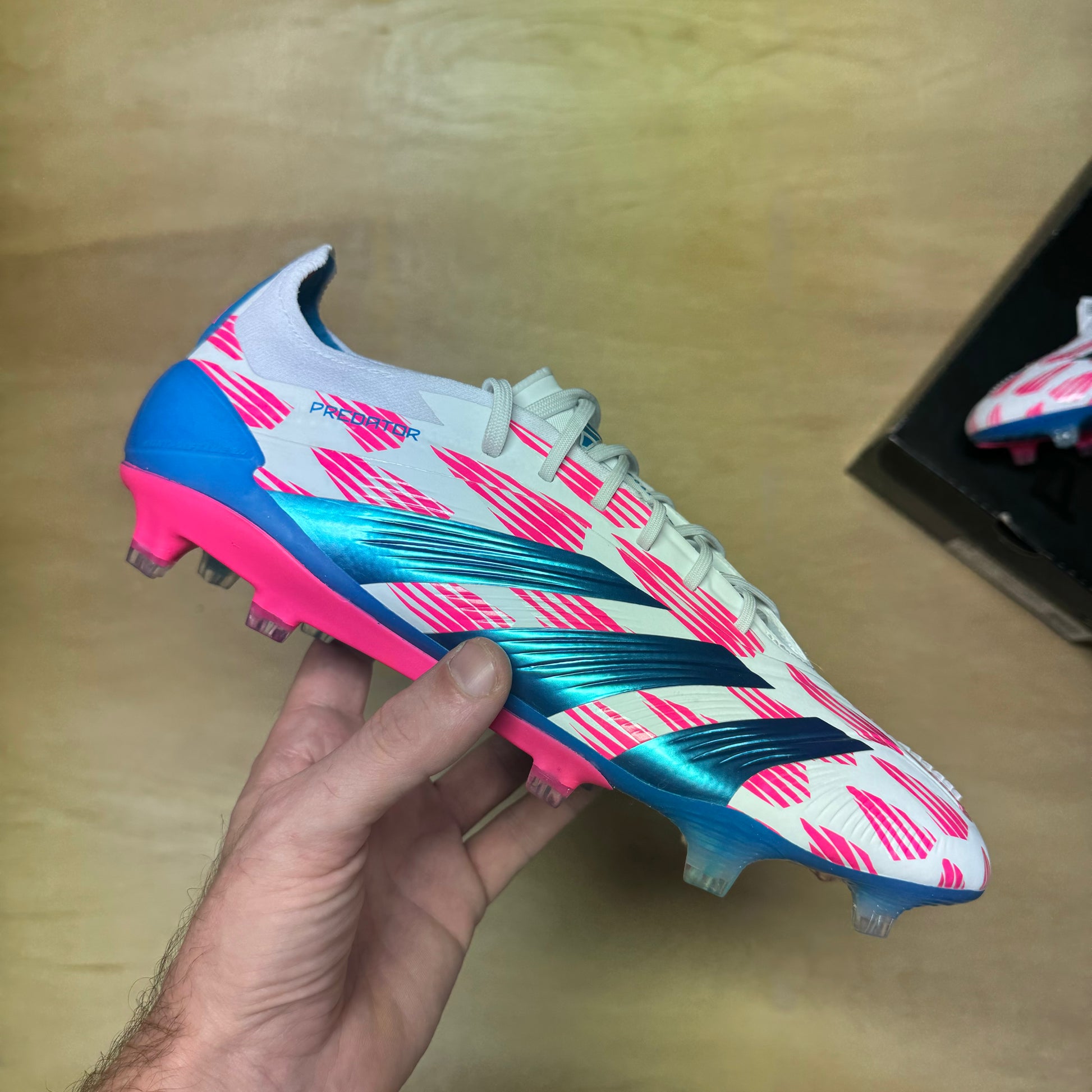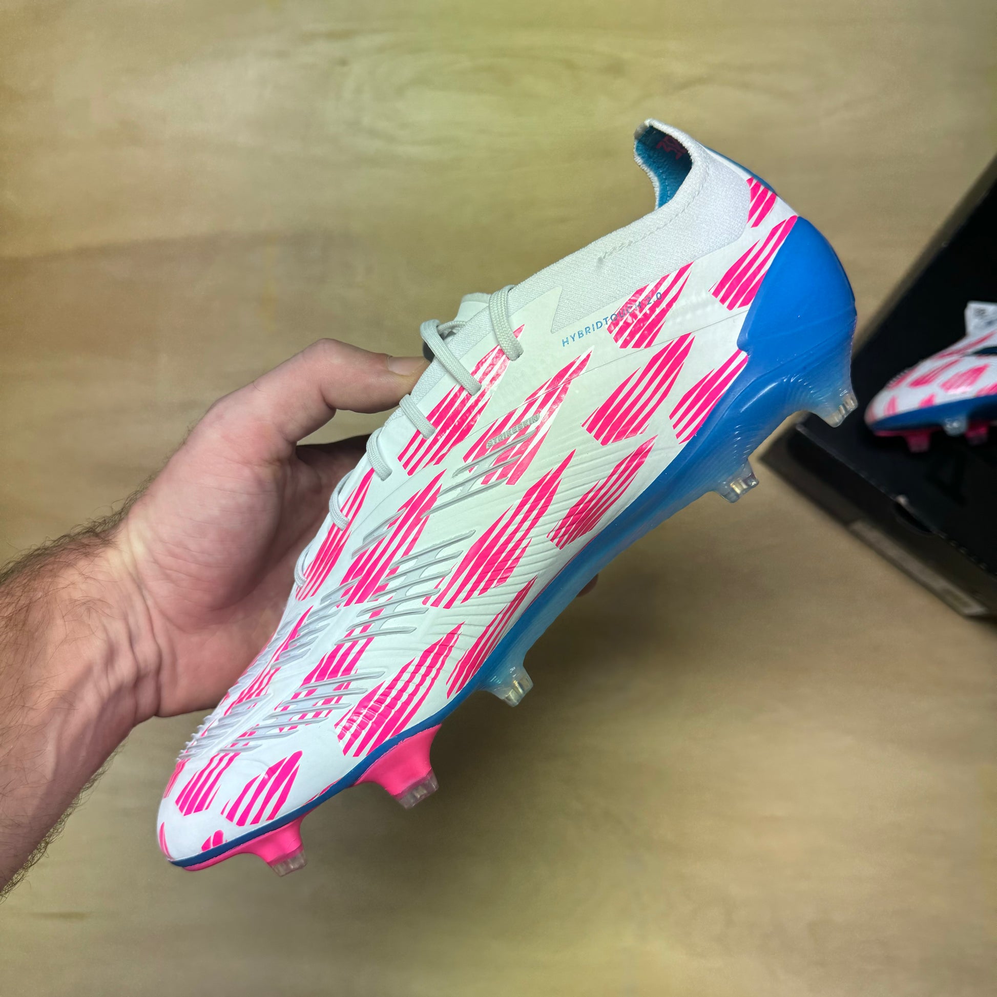 Adidas Predator Elite FG in the white/blue/pink colorway.