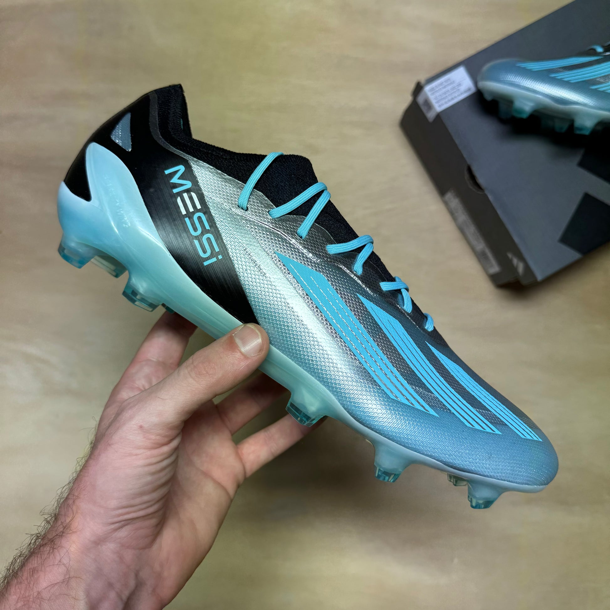 Adidas X Crazyfast .1 FG in the signature Messi silver colorway.